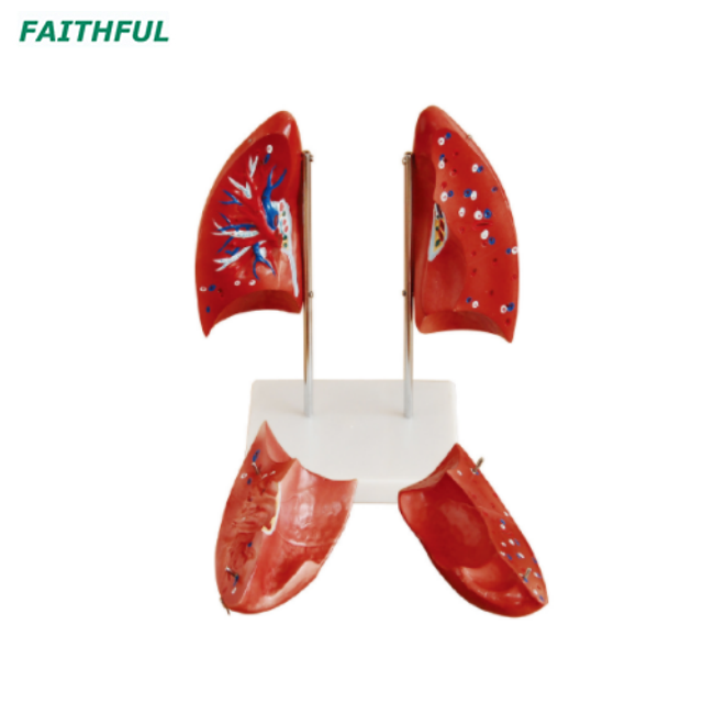 نموذج بحجم الحياة ينقص إلى 4 أجزاء. تحتوي الرئتين على اثنين من عمليات إزالة الإزالة لإظهار الهياكل الداخلية. على الوقوف.