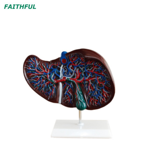 يوضح هذا النموذج الهياكل التشريحية الأساسية للكبد. شبكة أوعية thecomplex في الكبد المفتوح ، معروضة في الاختلافات في وضع Iver: أوعية HIUS ، والقنوات الصفراوية خارج الكبد والكبد. على الوقوف.