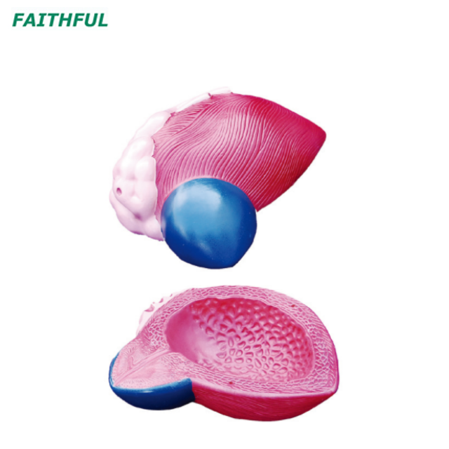 يظهر هذا النموذج المثانة البولية الذكور مع غدد البروستاتا في مجرى البول. تشريح وسطي لفضح كل من الهياكل الخارجية الداخلية.