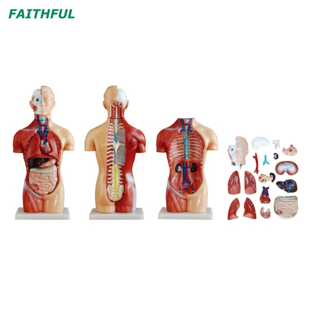 هذا النموذج بدون جنس بما في ذلك 18 جزءًا من القابلة للتشريح: الجذع ، الرأس ، الدماغ ، القصبة الهوائية ، المريء والشريان الأورطي الهابطة ،