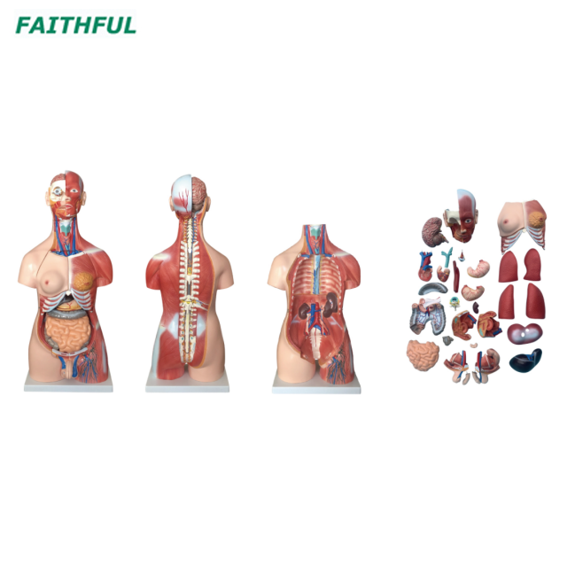 هذا الجذع للجنسين بما في ذلك 30 جزءًا: الجذع ، الصدر ، الرأس ، مقلة العين ، الدماغ (جزء واحد) ، العصب الشوكي (جزء واحد) ، الرئة (4
