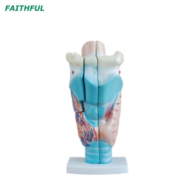 نموذج وظيفي يوضح حركات اللحم والغضاريف في المربع الصوتي. إنه يساعد الطلاب على طلب وفهم التشكل وهيكل الجهاز التنفسي والأعضاء الصوتية. تشريح في 3 أجزاء ، 3 مرات موسع.