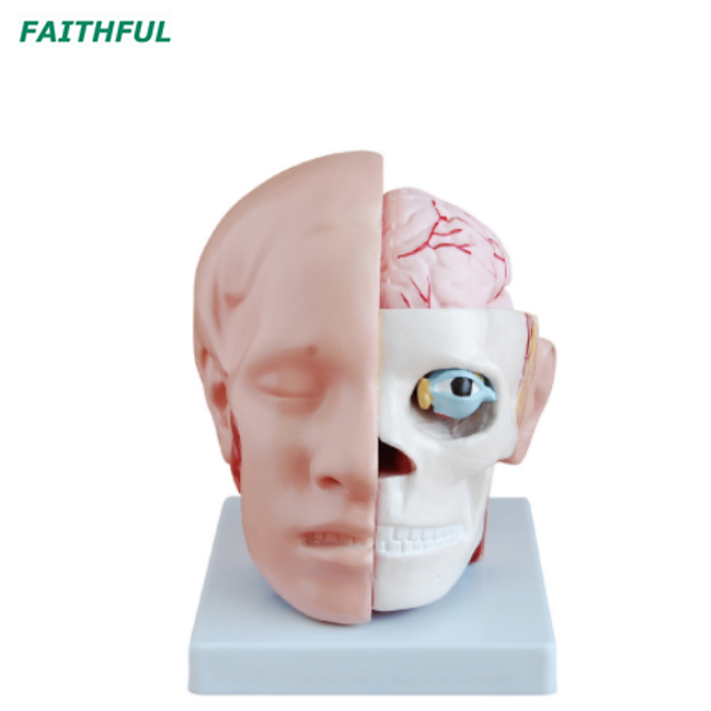 يوضح هذا النموذج بنية الرأس بما في ذلك بنية الدماغ داخل الجمجمة.