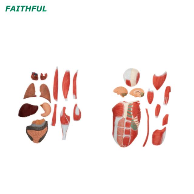 نموذج العضلات حجم الحياة هذا بما في ذلك 29 جزءًا من التشريح: الجسم ، قطع