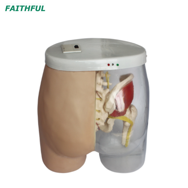 يعد هذا النموذج ذو الجلد الواقعي مثاليًا لتدريس التقنيات الفنية الصحيحة وكيفية تجنب الأعصاب والأوردة. يمكن أن يجسد Trochanter لتأكيد نقاط Iniections الصحيحة. يتم تفريغ السوائل التي يتم حقنها في المكان المناسب من خلال أنبوب Adrain في كيس تصريف ، ويشير ضوء areen إلى iniectiontechniaue الصحيح وتحديد المواقع - محاربي الضوء الأحمر والضوء الوامضة إذا ذهبوا عميقًا أو إذا كان وضع الإبرة غير صحيح.