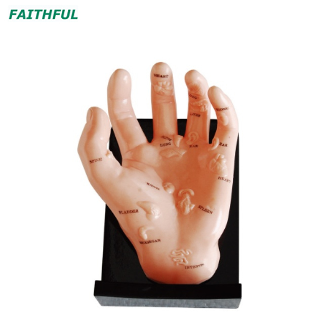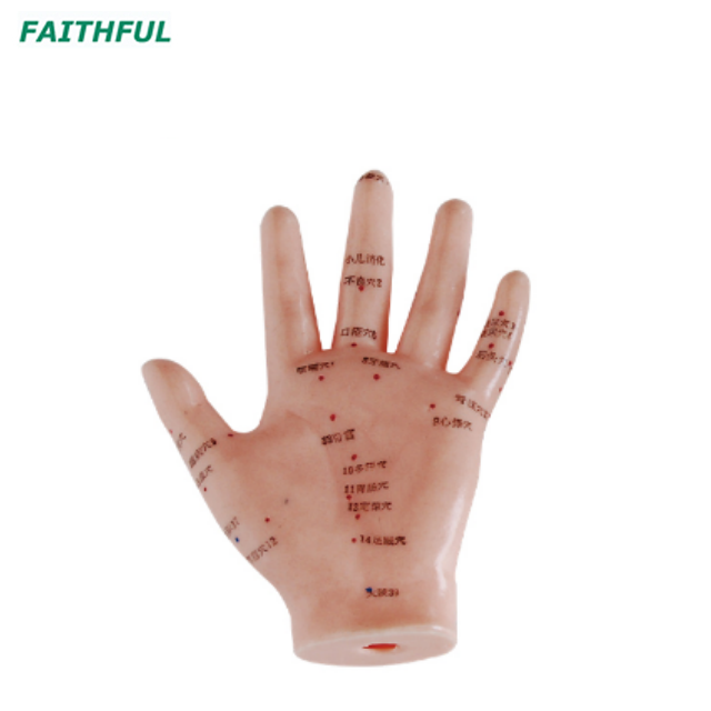 يوضح هذا النموذج موقع 20 نقطة من الوخز بالإبر على الظهر اليدوي و 13 نقطة من الوخز بالإبر على النخيل المميزة بالأحرف الصينية أو الأرقام. يتم تضمين كتيب باللغة الإنجليزية والصينية التي تصف النقاط.